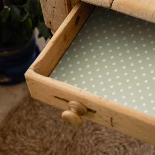 Wipe Clean & Unscented Drawer Liners in SAGE GREEN POLKA DOT