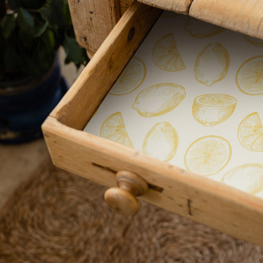 Wipe Clean & Unscented Drawer Liners with a YELLOW LEMONS Design