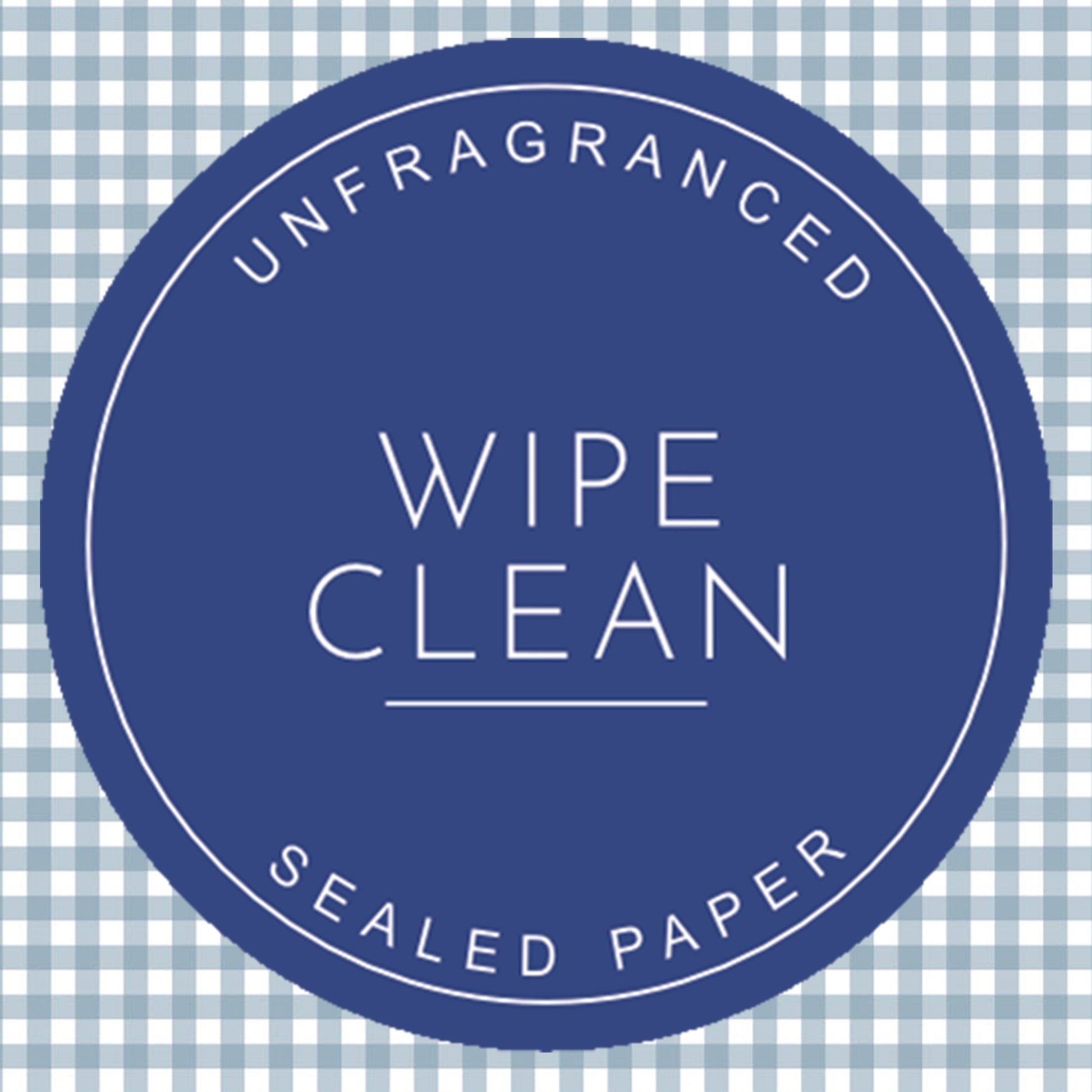 WIPE CLEAN paper allows for spillages, dust and dirt to be wiped away with a wet cloth. The high quality LAMINATED paper is robust to resist water and stains. When mess occurs, simply wipe clean with a damp cloth. The design is a classic GINGHAM PRINT in Cook's Blue.