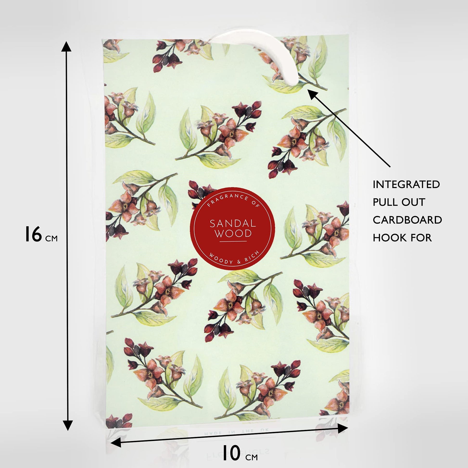 SANDALWOOD Scented Wardrobe Freshener in a floral SANDALWOOD Design Perfect for Cupboards, Drawers and Wardrobes, Pack of 2
