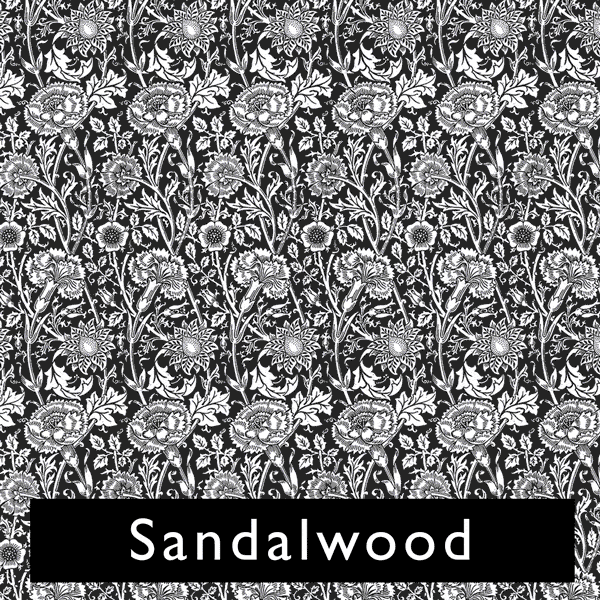 The design is an elegant William Morris 'Pinks & Roses' in Black pattern. Each fragrant drawer liner is then gently scented with a Sandalwood fragrance. Ideal for keeping your drawer and cupboards smelling fresh and looking colourful. Perfect for all drawers, cupboards and any shelf in need of some colour and freshening scent.