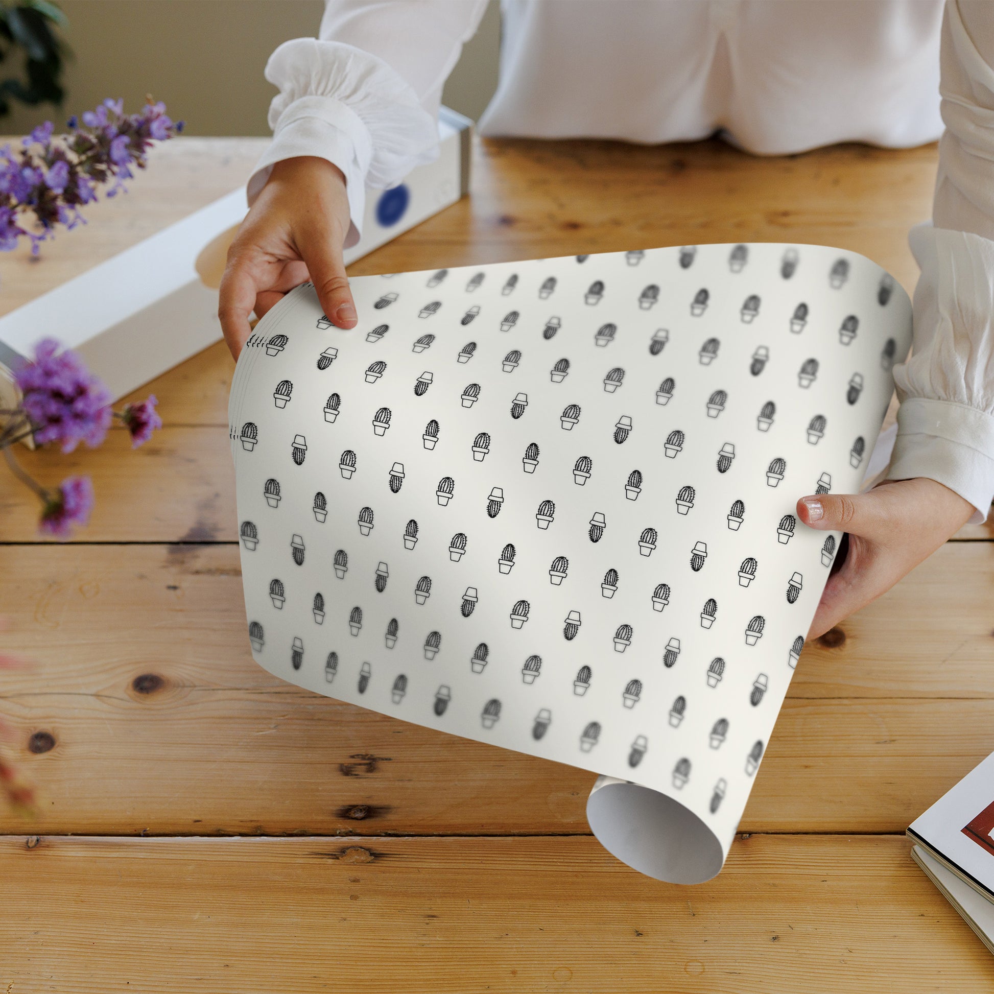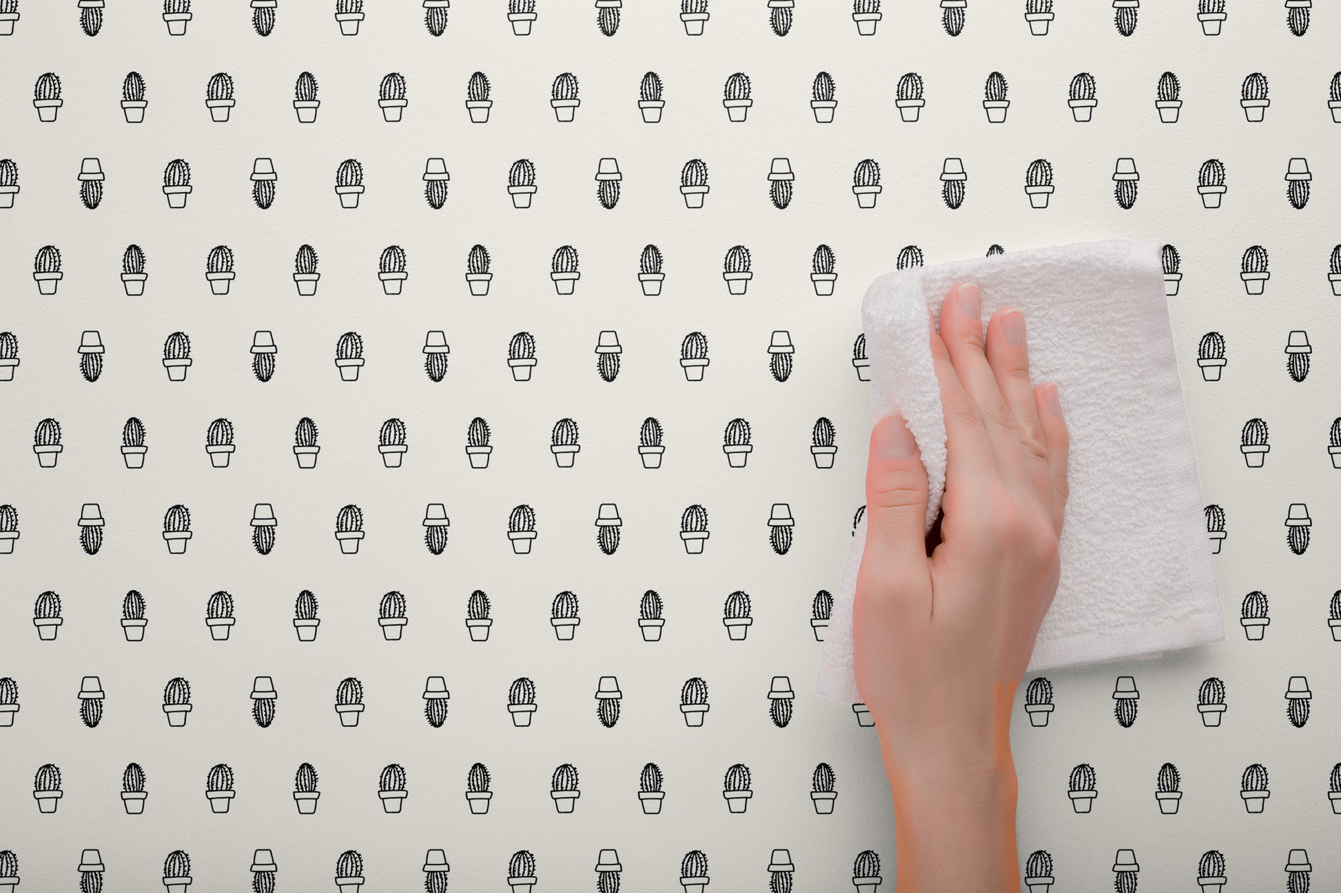 WIPE CLEAN paper allows for spillages, dust and dirt to be wiped away with a wet cloth. The high quality LAMINATED paper is robust to resist water and stains. When mess occurs, simply wipe clean with a damp cloth. The design is a contemporary CACTUS PRINT in BLACK & OFF WHITE.