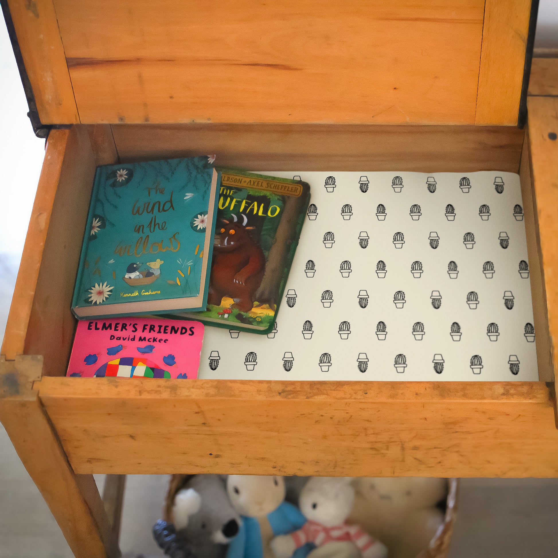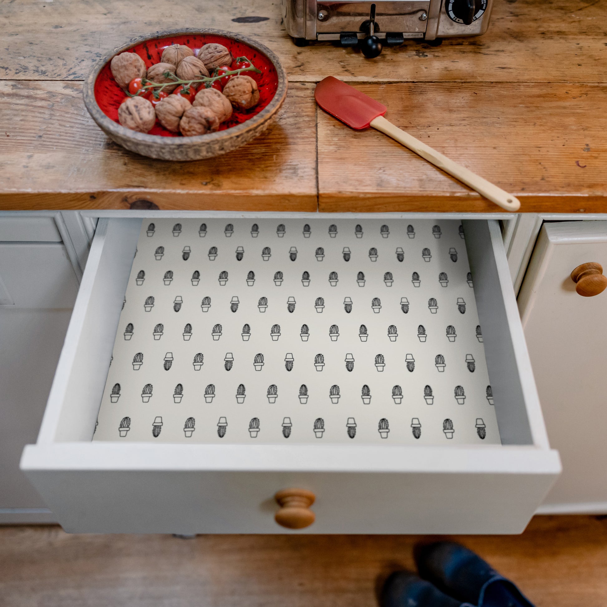 Wipe Clean & Unscented Drawer Liners with a CACTUS Design